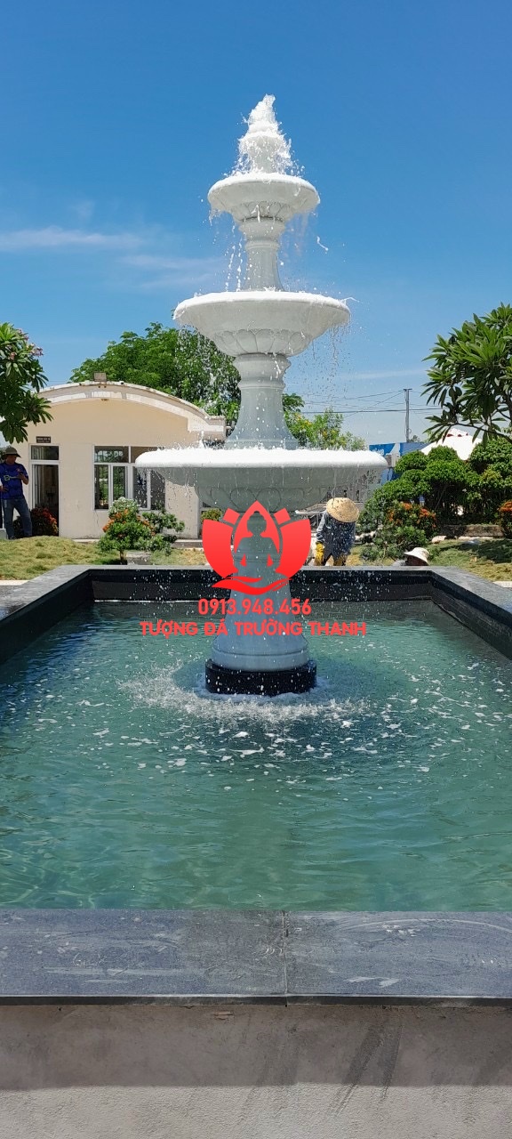 - Đài nước tròn nhiều tầng cổ điển: Đây là mẫu đài nước quen thuộc trong các biệt thự, khách sạn hoặc quảng trường. Thiết kế theo dạng nhiều tầng tròn xếp chồng, nước chảy từ đỉnh xuống tạo nên âm thanh róc rách êm dịu. Mẫu này thường làm từ đá cẩm thạch trắng hoặc đá granite, mang vẻ đẹp thanh thoát và quý phái.